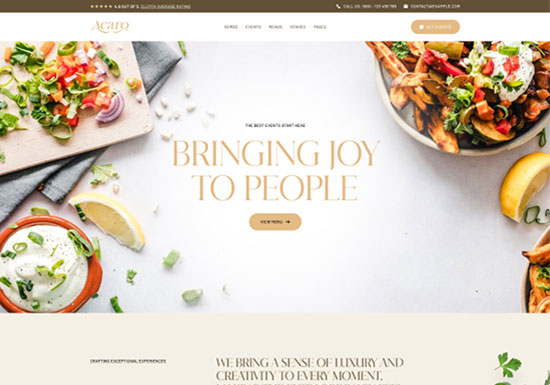 Full-service catering with drinks, canapes, luxury appetizers, waiting staff, and rental materials.